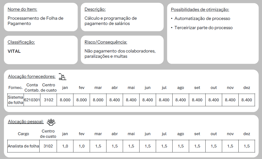 No OBZ 2.0, cada valor orçado é sustentado por uma memória de cálculo clara e rastreável. Seja um contrato fixo, um custo com volume variável ou uma projeção complexa, é fundamental explicitar os drivers de consumo (como número de usuários, volume de produção, km rodados etc.) e os fatores que sustentam cada gasto.